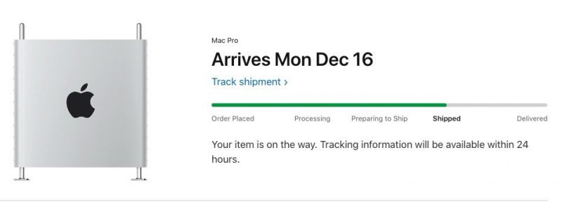MacStadium's Brian Stucki ordered a couple of new Mac Pros right when Apple began accepting purchases, and his first Mac Pro is coming in just a few days on December 16, which is earlier than the delivery dates that Apple had listed.